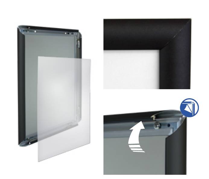 Son profilé aluminium et son ouverture vous permettrons de changer très rapidement votre affiche , et celle ci sera bien protégée et maintenue par la feuille de plexi de protection