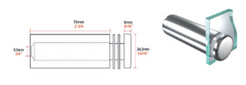 1. Entretoise murale vissée en aluminium Ø 24, perçage Ø 13 mm, pour panneau de 6 à 20 mm d'epaisseur