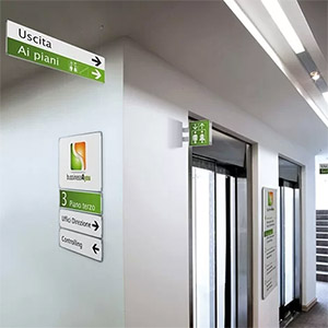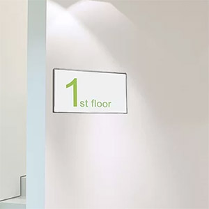 Cette plaque de signalétique est idéale pour organiser l’accueil et l’orientation des personnes dans les bâtiments.