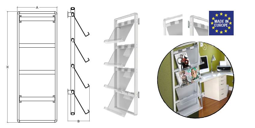 1. Porte brochures mural, présentoir publicitaire ref athy