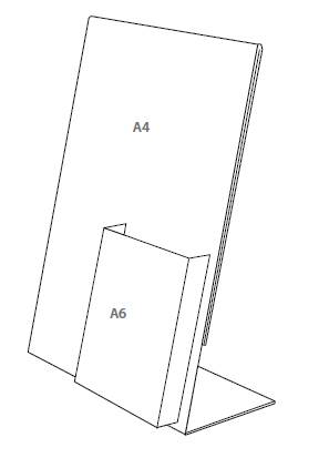 Ce porte menus plexiglas vous permet de présenter tous types de documents professionnels ou publicitaires tels que flyers, menus, tarifs etc ... et également vos flyers en format A6 grâce à son logement prévu à cet effet