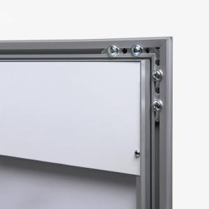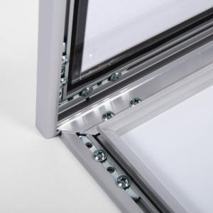 Votre vitrine lumineuse possède une porte verrouillable à charnière en aluminium et un façade en polycarbonate transparente .