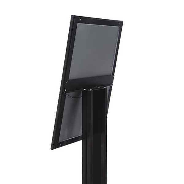 Ce porte menu  pour restaurant sur pied est constitué d'une structure alu et d'une vitrine sécurisée avec fond magnétique pouvant recevoir 4 feuilles A4 sur une surface totale de 435 x 609 mm