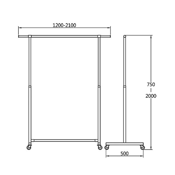 Porte vetement autoportant simple ajustable en longueur de 1200 à 2100 mm