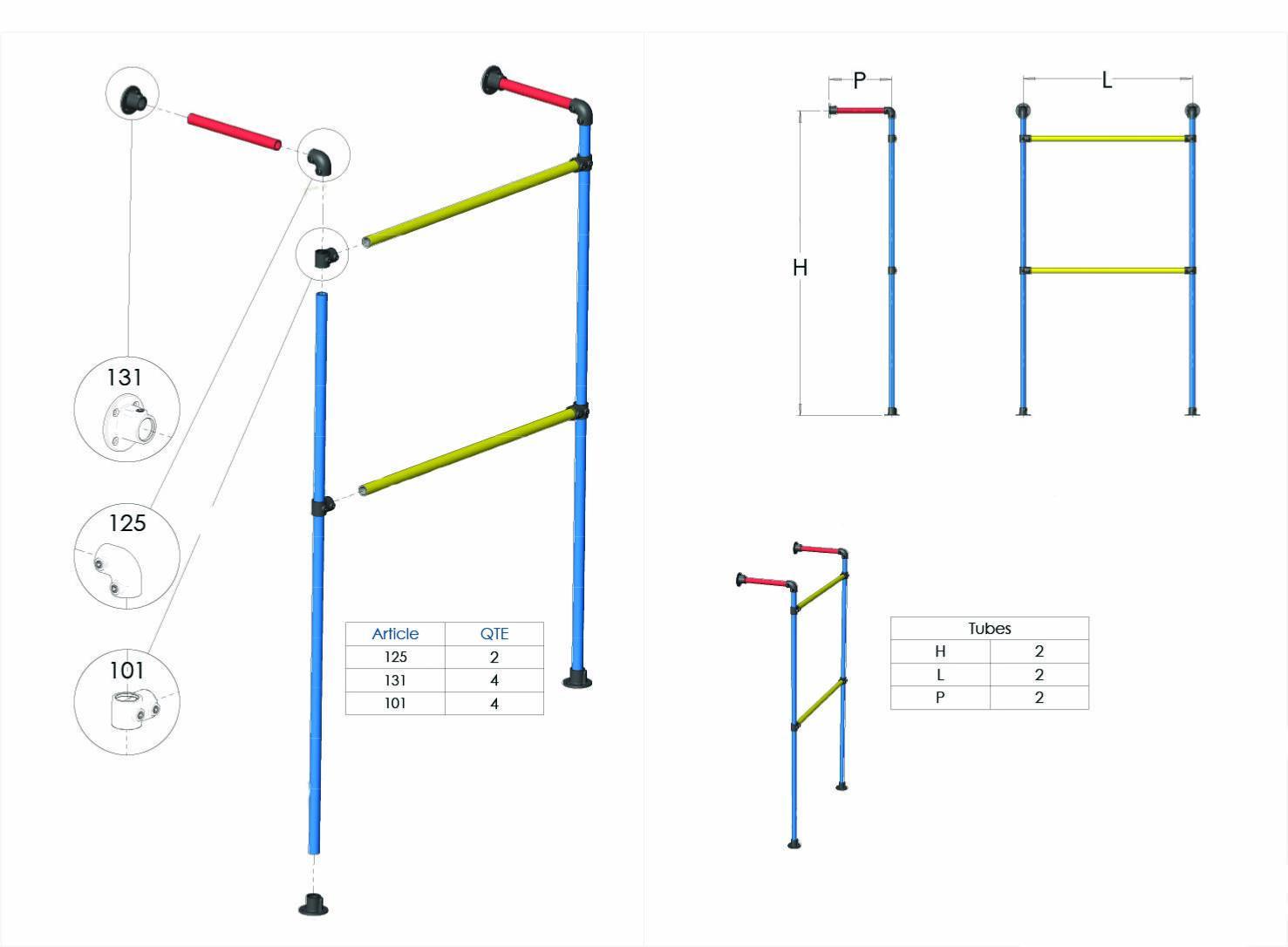 De nombreuses possibilités de mobiliers tubulaires vous sont proposées en kit