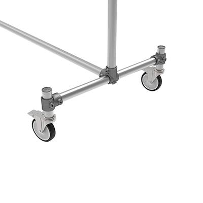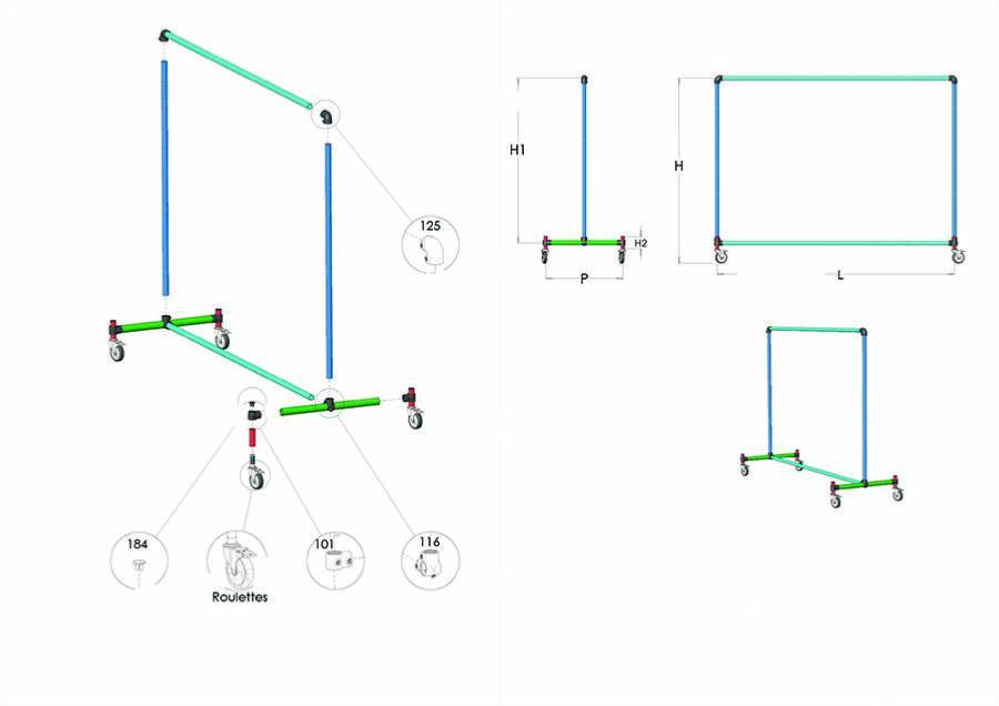 Porte vetement simple sur roulettes et tubes diametre 34 mm, hauteur 150 cm et longueur 150 cm