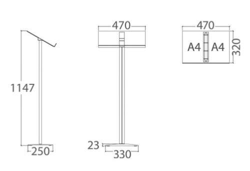 1. Porte documents sur pied en plexiglas avec anneaux amovibles, type pupitre de conférence
