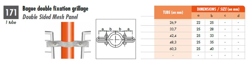 1. Raccord tubulaire Fitclamp pour tube rond 42 mm, double fixation grillage