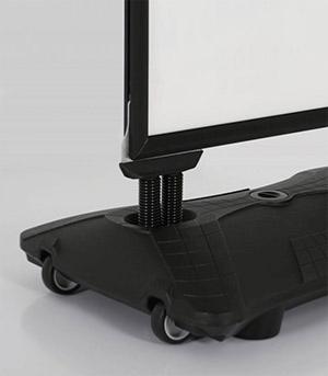Certains stop trottoirs pas chers sont proposés avec un réservoir d'eau permettant une meilleur stabilité , d'autres chevalets publicitaires pas chers sont montés sur ressorts pour une meilleur résistance au vent
