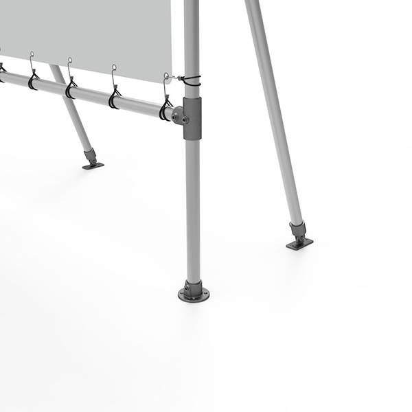 La fixation au sol de votre structure publicitaire est à faire avec les platines fournies si votre sol est dur . Sinon vous avez également la possibilité de sceller les pieds avec du ciment et ainsi obtenir une structure fixe