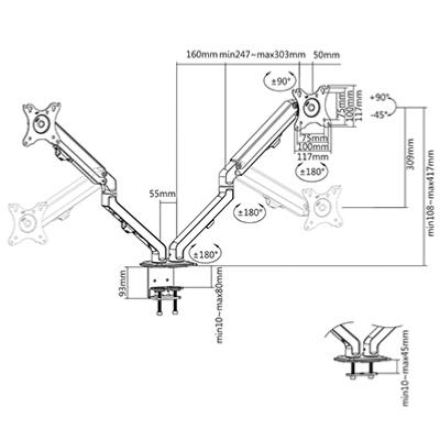 1. Support écran PC de bureau , version pour 2 écrans de 17 à 27 pouces , installation bord de bureau ou au travers, version orientable , inclinable et rotative avec bras articulé