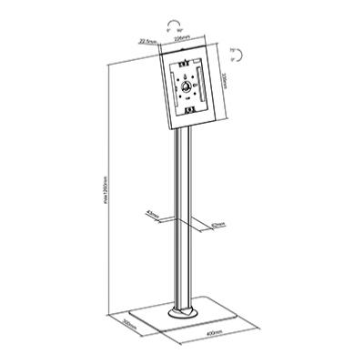 Le support sur pied  est une solution sécurisée pour accueillir la tablette ipad  et samsung et 9.7 à 11 pouces Le support ipad  se compose d'une base à poser au sol et d'un étui antivol pour votre tablette. Cet étui est muni de coussinets qui permettent d'embrasser efficacement votre tablette et d'un système de sécurité pour la protéger du risque de vol. Elégant et fonctionnel, le support tablette tactile  offre aussi la possibilité d'incliner votre tablette (0/75°), et de la positionner en mode paysage ou en mode portrait en toute simplicité pour s'adapter à chaque utilisateur. Le support de sol pour ipad  convient donc idéalement à toute utilisation en lieu public et pour toutes les applications professionnelles nécessitant une solution sûre, facile à installer, et qui offre un rendu esthétique.