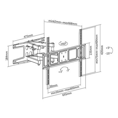 Ce support mural articulé est une excellente solution professionnelle pour fixer un écran vidéo de 37 à 80  pouces. Il peut supporter une charge maximale de 40 kg.