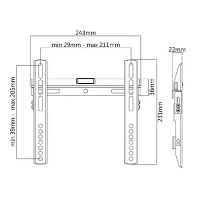 Robuste et facile à installer, ce support dispose d'un niveau à bulle pour un réglage parfait de votre écran. Discret, ce support laisse en effet un espace de seulement 2,7cm entre le dos de l'écran et le mur, il se distingue donc par son design ainsi que par sa simplicité d'installation et convient donc à toutes les pièces de votre intérieur, pour les particuliers ainsi que pour les professionnels de l'audiovisuel.