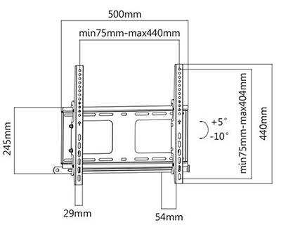 Il répond au standard VESA compris entre 75x75 mm et 400x400 mm et peut accueillir un écran jusqu'à 80 kg