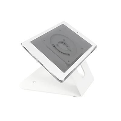 Le support ecran  a été conçu pour accueillir une tablette ou un étui pour tablette tactile répondant au standard Vesa 75x75. Esthétique et fonctionnel, il dispose d'un design discret (11 cm) et de deux trous de fixation pour être vissé efficacement à la table. Facile à utiliser, ce support est incliné vers le haut (30°) et permet d'orienter la tablette en mode paysage ou en mode portrait pour répondre au besoin de chaque utilisateur. Le support tablette est donc idéal comme borne de consultation autant pour les particuliers que pour les professionnels.