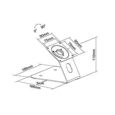 Le support ecran  a été conçu pour accueillir une tablette ou un étui pour tablette tactile répondant au standard Vesa 75x75. Esthétique et fonctionnel, il dispose d'un design discret (11 cm) et de deux trous de fixation pour être vissé efficacement à la table. Facile à utiliser, ce support est incliné vers le haut (30°) et permet d'orienter la tablette en mode paysage ou en mode portrait pour répondre au besoin de chaque utilisateur. Le support tablette est donc idéal comme borne de consultation autant pour les particuliers que pour les professionnels.