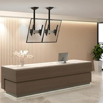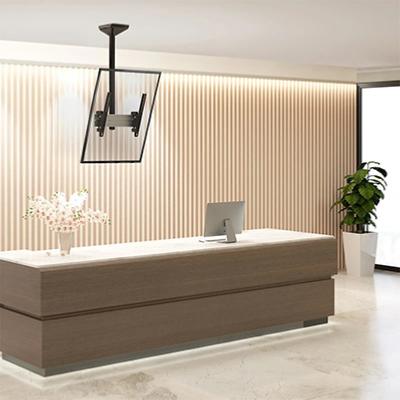 Ce support a été conçu pour répondre spécifiquement aux besoins des professionnels de l'affichage dynamique et de l'intégration audiovisuelle pour les évènements et les lieux accueillant du public. Il est composé d'un dispositif de fixation au plafond pour une installation rapide et sécurisée recouvert d'un élégant cache en plastique.