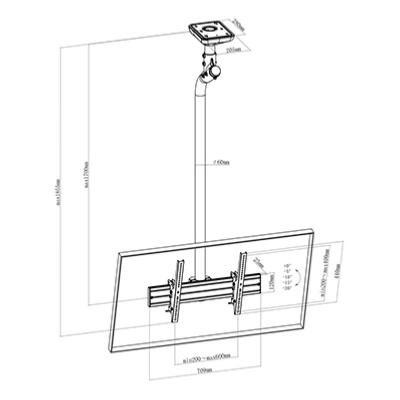 Le support plafond pour ecran tv est destiné à accueillir un écran de télévision de 43 à 75 pouces répondant aux standards VESA (100x100mm min, 600x400mm max), jusqu'à 50 kg.