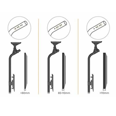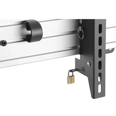 Pour votre écran, le mât robuste vous permet d'ajuster le niveau de votre écran (225 cm max) et de l'orienter de gauche à droite (360°). Les bras de fixation VESA disposent d'un système à goupille pour régler l'inclinaison de votre écran (0/-5°/-10°/-15°/-20°) de façon précise et assurent une sécurité maximale à votre installation avec un mécanisme antivol prévu pour un cadenas.