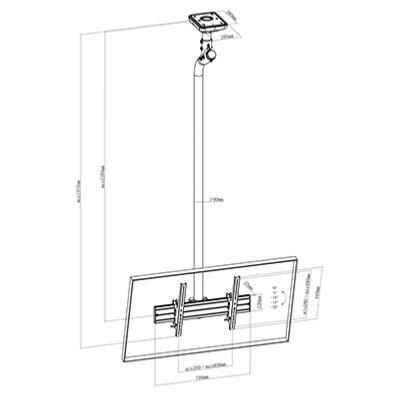 Le support plafond pour ecran tv est destiné à accueillir un écran de télévision de 43 à 75 pouces répondant aux standards VESA (100x100mm min, 600x400mm max), jusqu'à 50 kg.