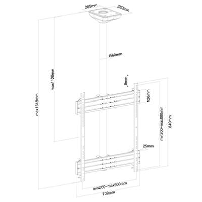 Support plafond pour 1 ecran TV de 65 à 75 pouces ,mode portrait  hauteur 150 cm