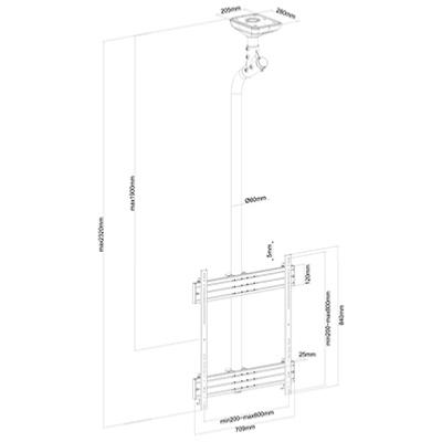 Support plafond pour 1 ecran TV de 65 à 75 pouces ,mode portrait  hauteur 225 cm