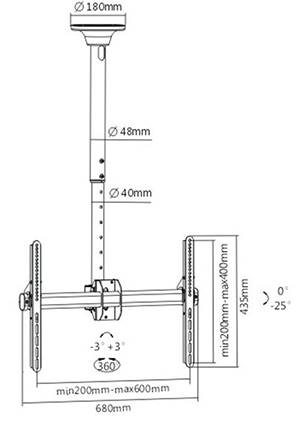Ce support plafond est une excellente solution professionnelle pour fixer  un écran vidéo de 37 à 75  pouces