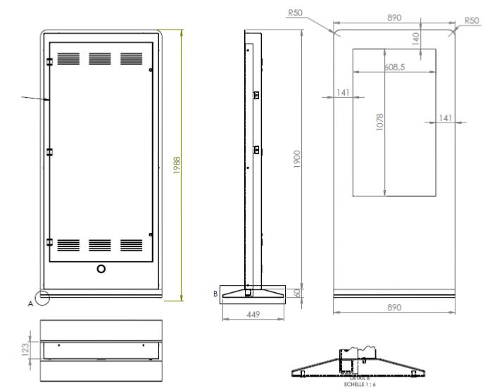 Le Totem Digital 49 pouces Tactile McNary est également disponible pour du 49 pouces (124,46 cm) et 55 pouces (139,70 cm). Il a été réalisé dans notre atelier métal.